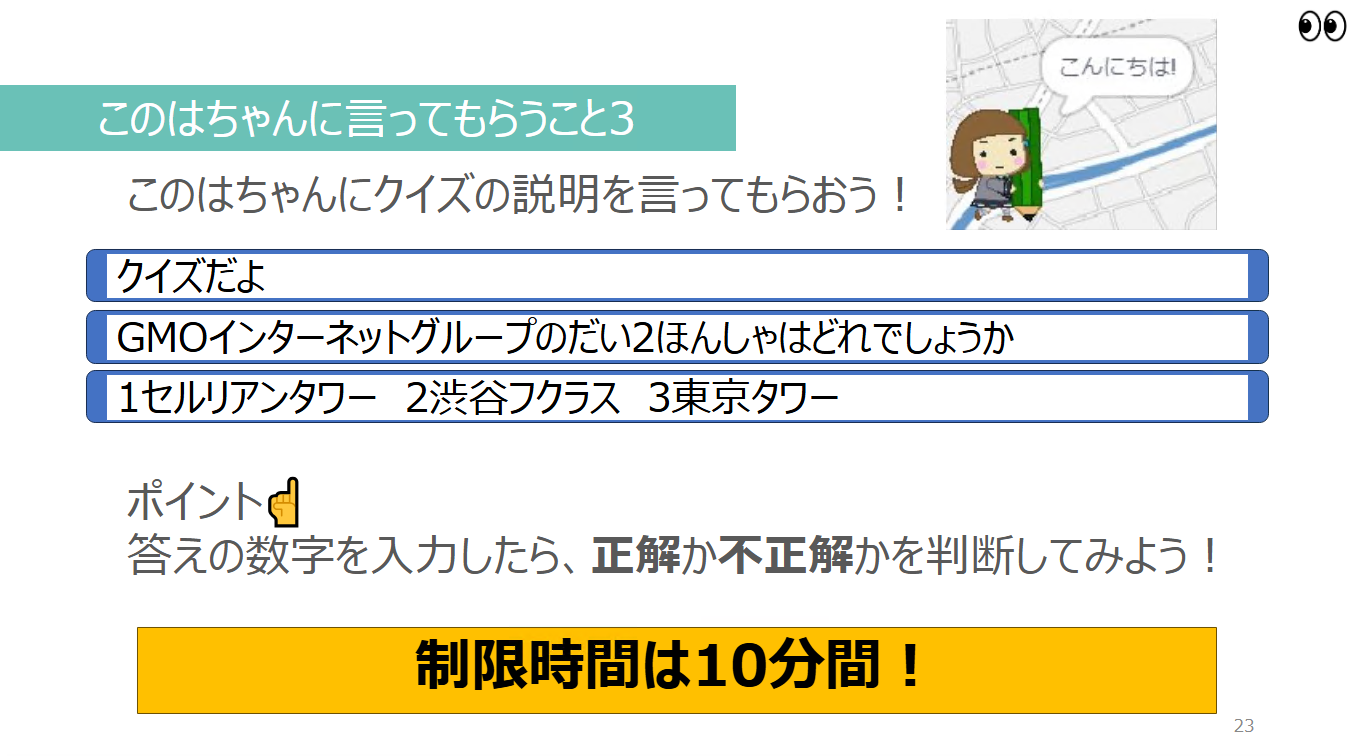 “伝えたいことを伝えよう”、“プログラムで紹介しよう”タイトルは違いますが、どちらもGMOインターネットグループが日々行っている仕事や考え方に通じる内容を意識して構成しています。