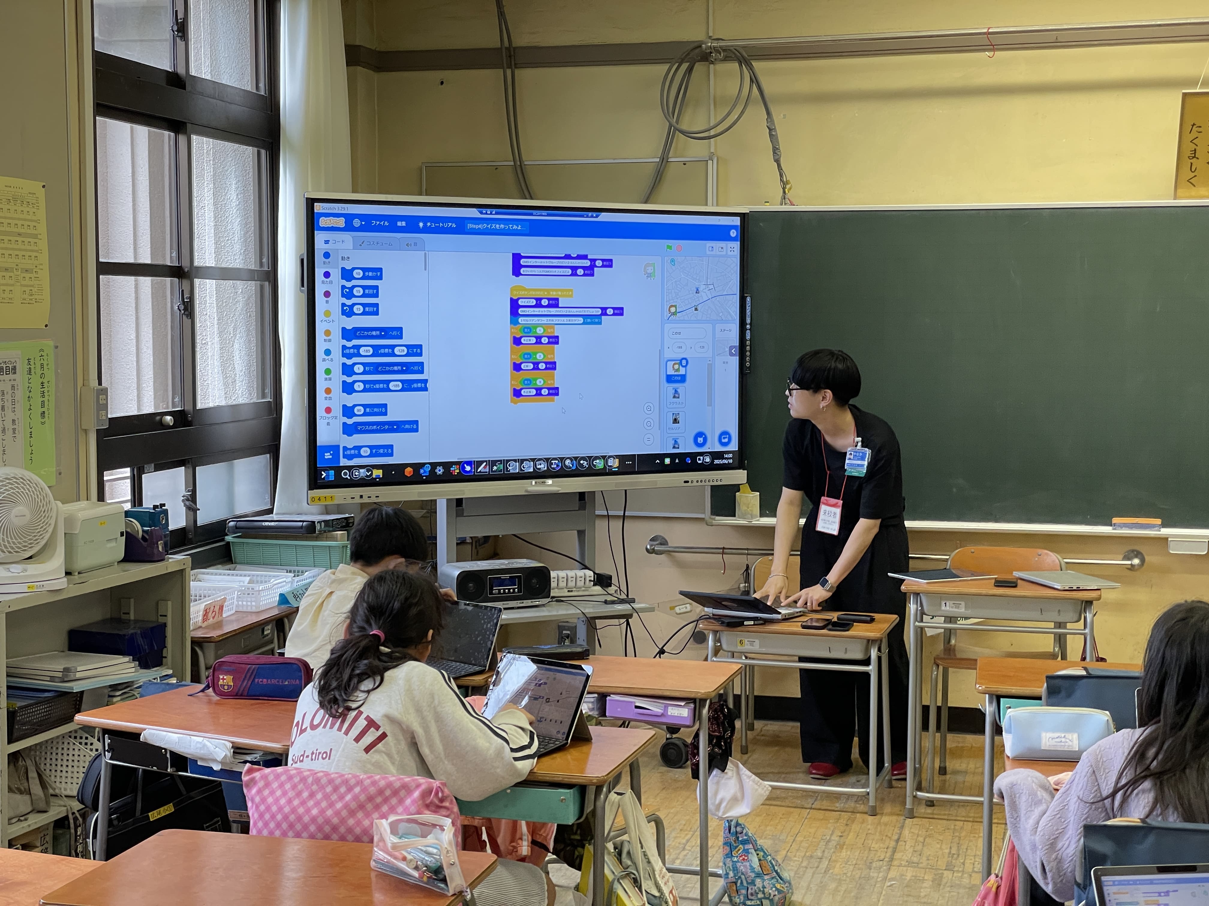 ですが、今回の授業では教える立場になり、“どうすればより伝わりやすく、理解してもらえるか”を考える良い機会になりました。また、子どもたちがScratchを使って、自分の作りたいものを工夫しながら形にしていく姿を見ていると、その素直な感情や反応を通してものづくりの喜びを改めて実感する機会となりました。教える側でありながら、自分自身が初心を取り戻すような感覚でしたね。