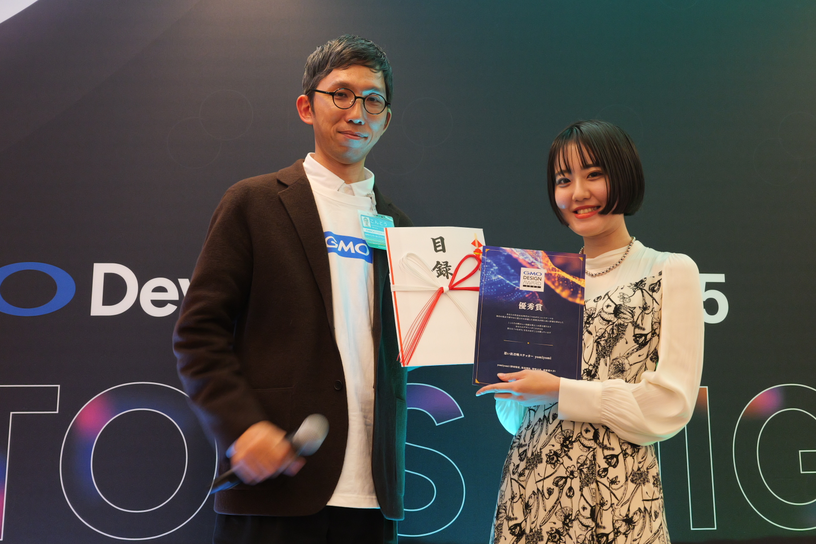 優秀賞の受賞者にも、本コンテストの実行委員を務めたGMOインターネットグループのクリエイターから賞状と目録を贈呈しました。