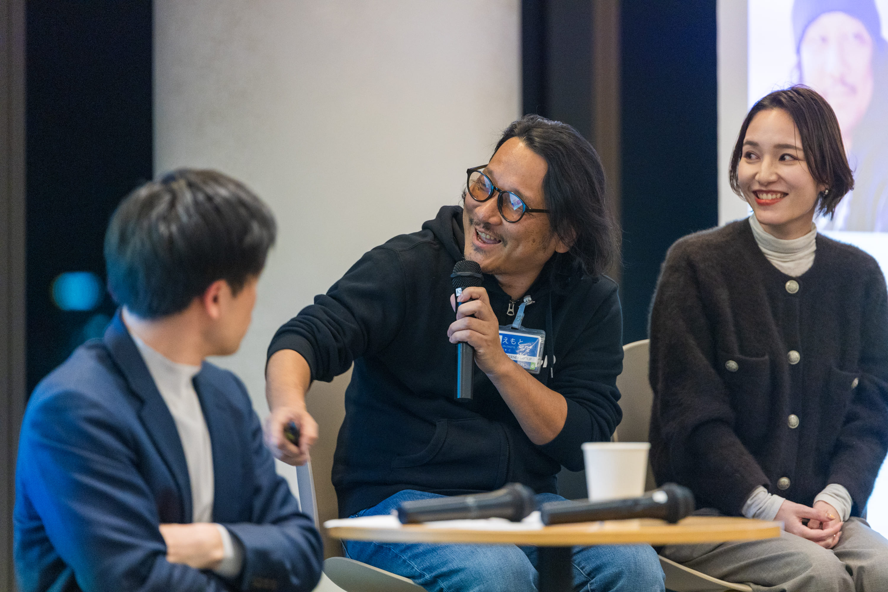 GMOインターネットグループからは、GMOペパボ株式会社 コーポレートコミュニケーション室 コーポレートデザインチームの住友順、GMOグローバルサイン・ホールディングス株式会社 デザインセクション クリエイティブデザインGの江本仁の2名が登壇。AIの台頭で動画制作の環境も大きく変わりつつある中、これからさらにAIの活用が進んでいく時代を、どのような意識や工夫で乗り切るのかを議論しました。