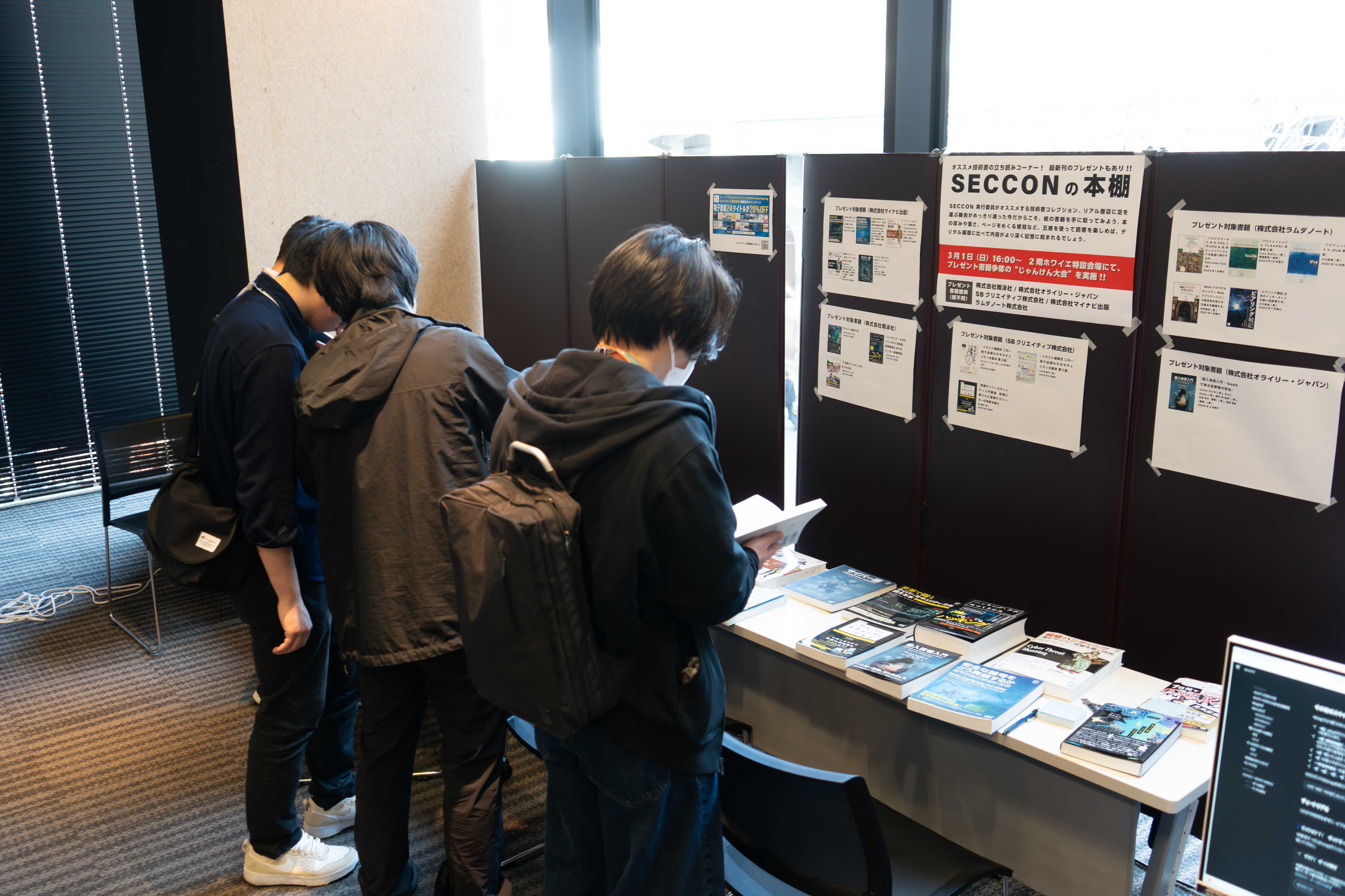 SECCON 実行委員がおすすめする技術書を立ち読みできるコーナーを用意し、様々な技術書に五感で触れてもらえればという思いから開催しました。