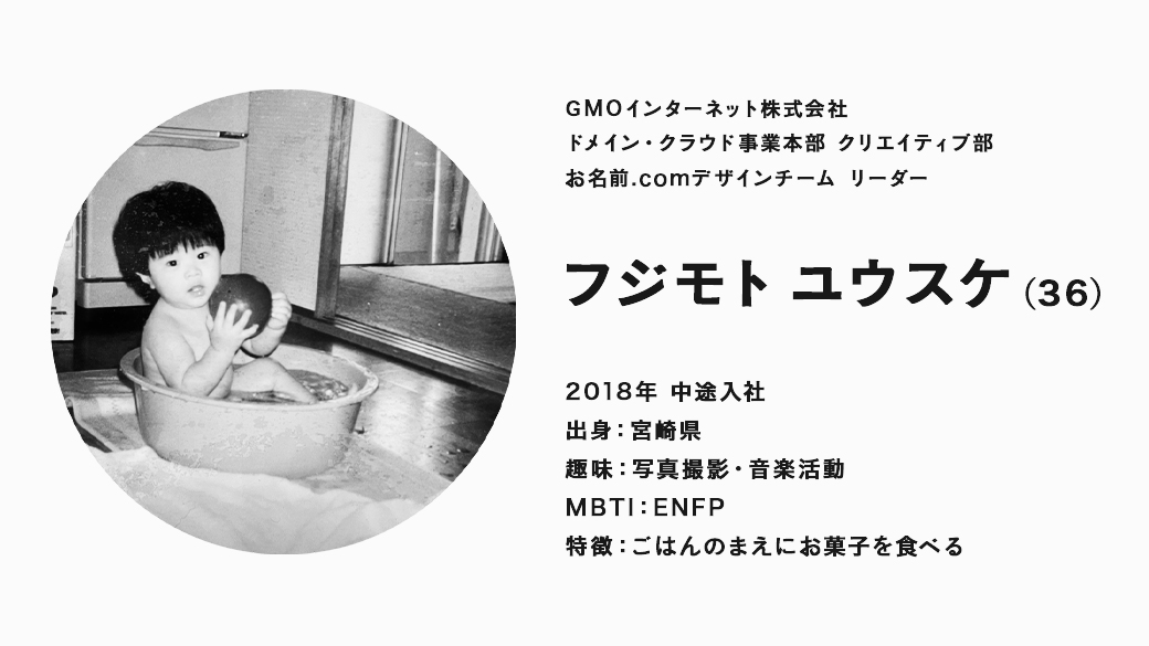 普段はお名前.comというドメイン登録・販売サービスのデザインチームにてリーダーとして就業させていただいています。主に業務のリードやフォローをはじめ、マネジメント、採用活動、拠点で起こる事象や課題の対応などありがたいことに幅広い分野でお仕事をさせていただいています。