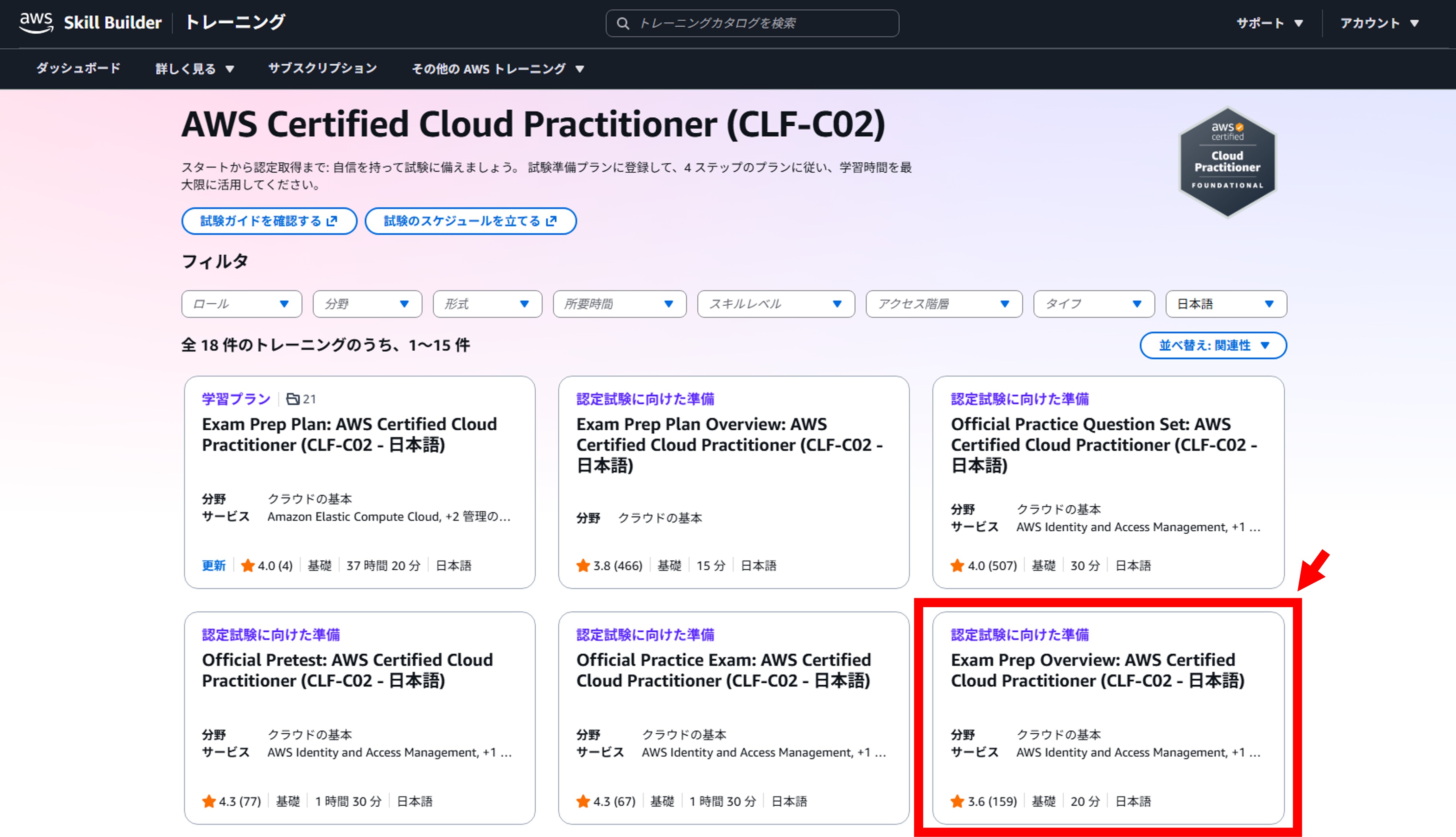 なお、AWS公式の学習コンテンツ「Skill Builder」でも試験ガイド(Exam Prep Overview)が確認できます。Skill Builderの方が丁寧です。Builder IDでサインインできます。