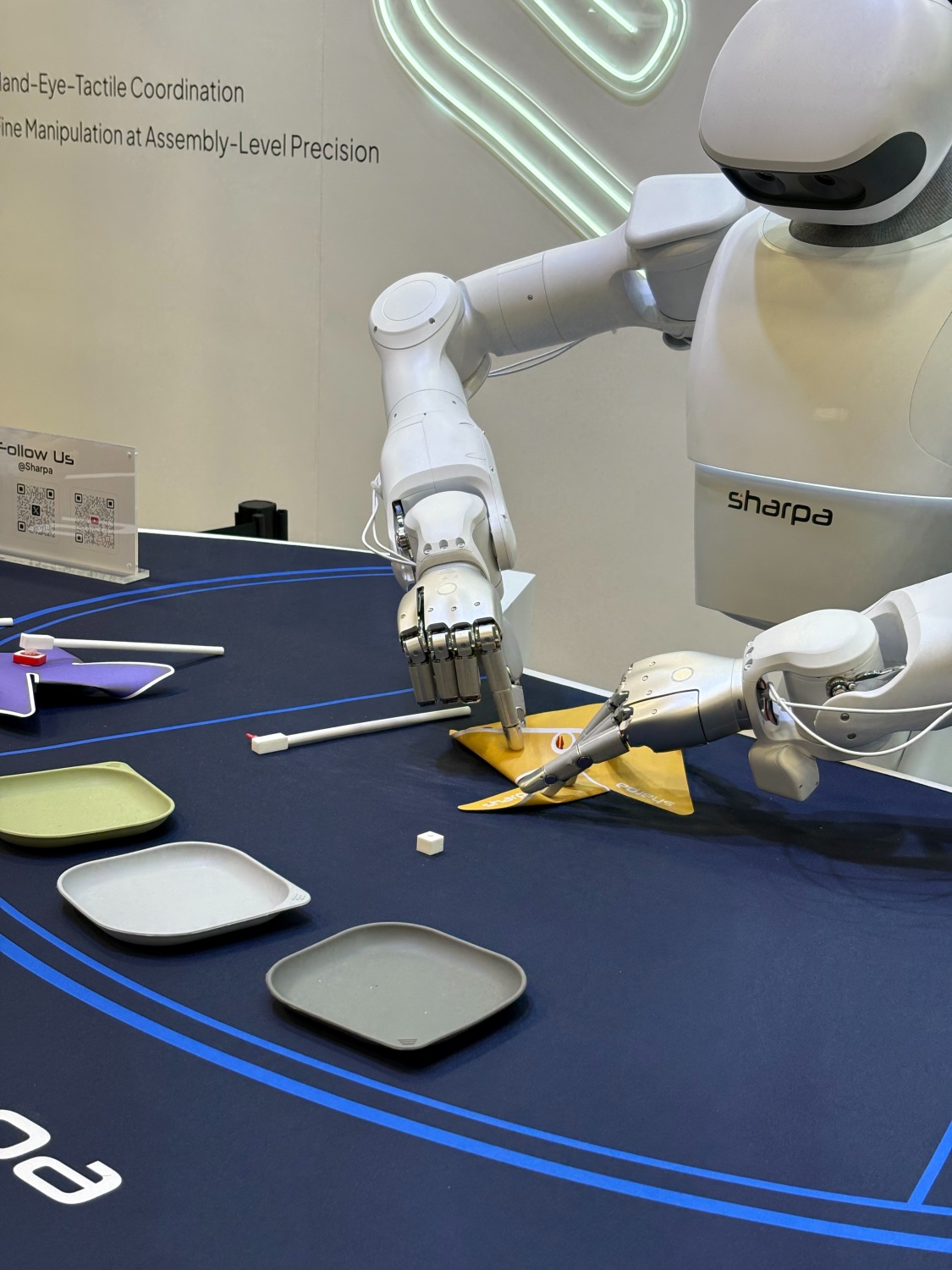 IK(逆運動学)で事前に作り込んだモーションを見せる展示から、VLAモデルを前提に「認識して、その場で判断して動く」展示へと、明確に軸足が移っているように見えました。