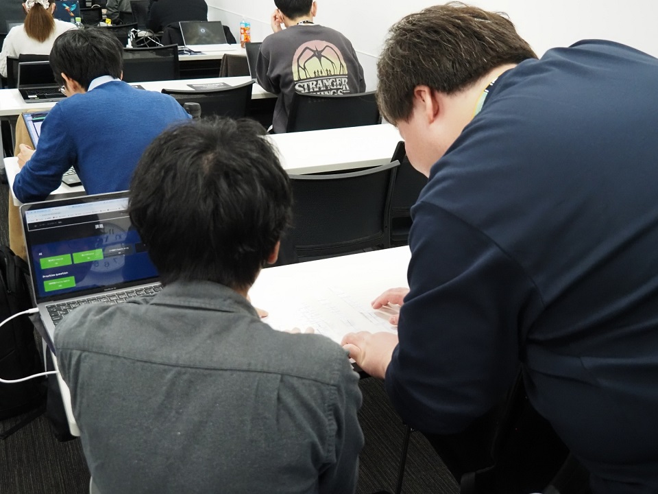 協力し合った参加者が早く次の課題へ進んだりと、終わってみればホワイトハッカー同士の自然な交流が生まれた本セッション。最終的にはほとんどの方が周囲と話し合い、1つの画面に顔を寄せ合いながら課題を解いていく協力体制が出来上がっていました。